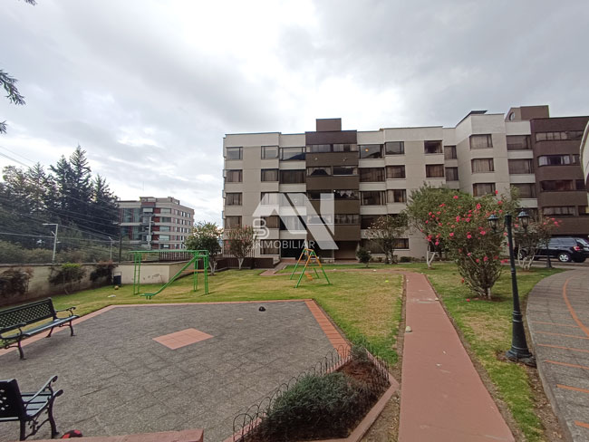 Se encuentra ubicado en un 2 piso, edificio con ascensor, amplias áreas verdes para disfrutar con sus mascotas, sauna, área de juegos infantiles y parqueadero. Tiene 85 m2 de construcción.