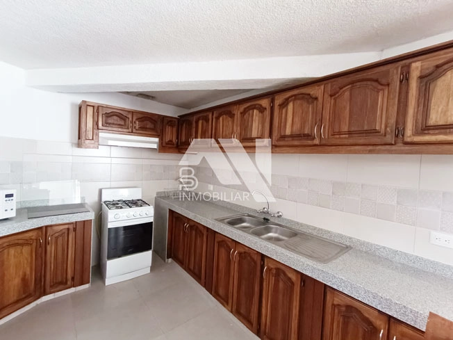 Cocina con muebles altos y de piso, mesones en granito.
